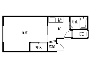 | 詳細間取 | 1K (洋9帖×1、キッチン4.5帖) | ||